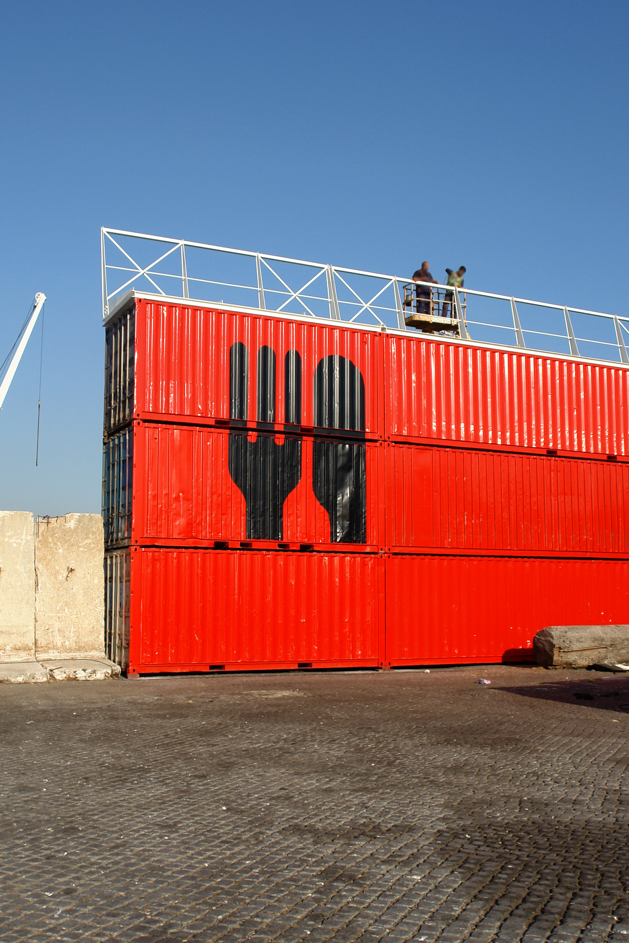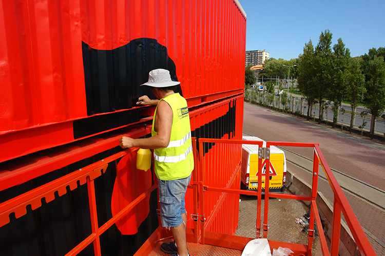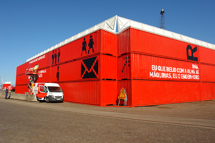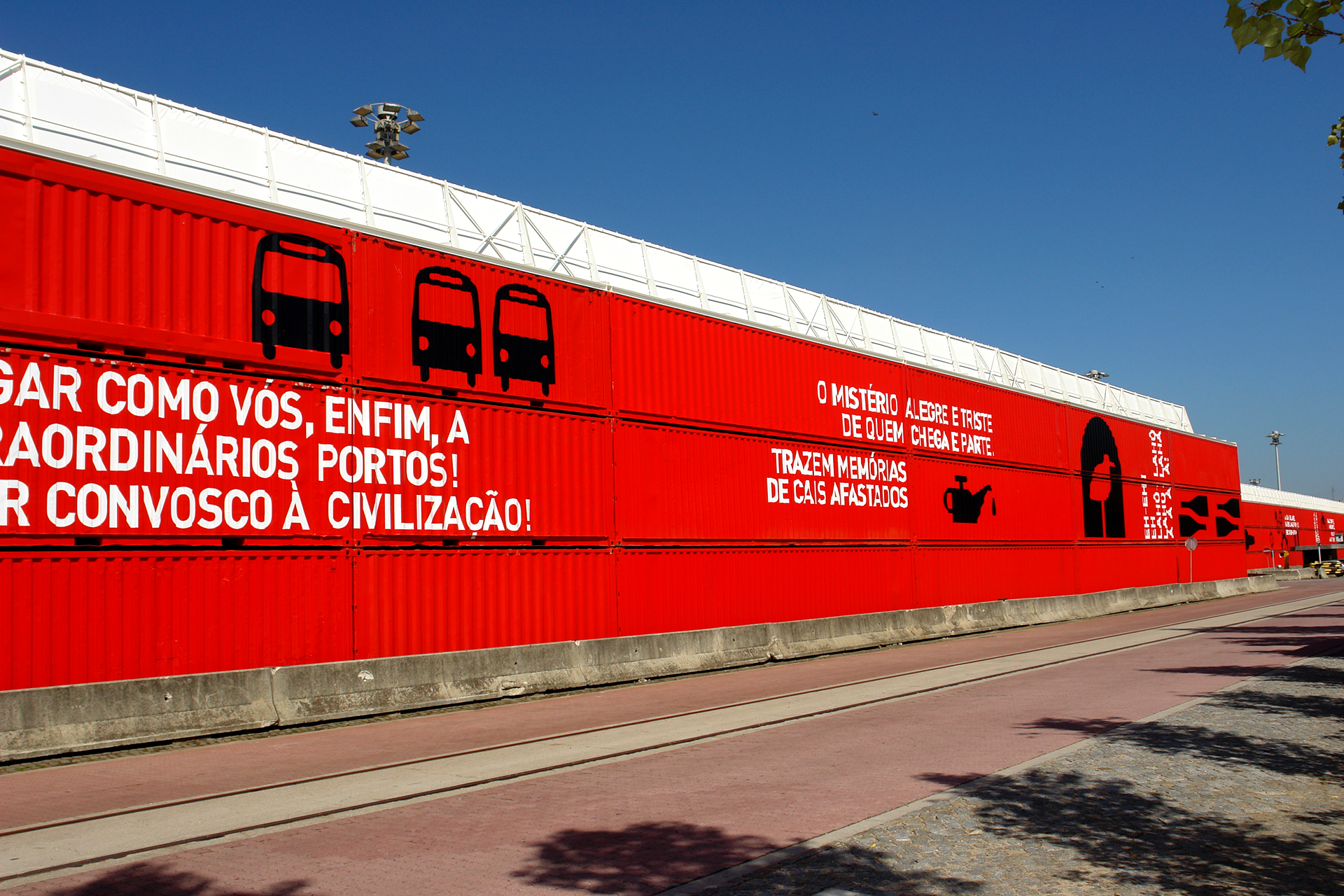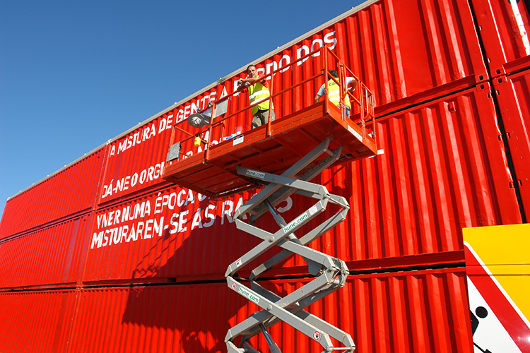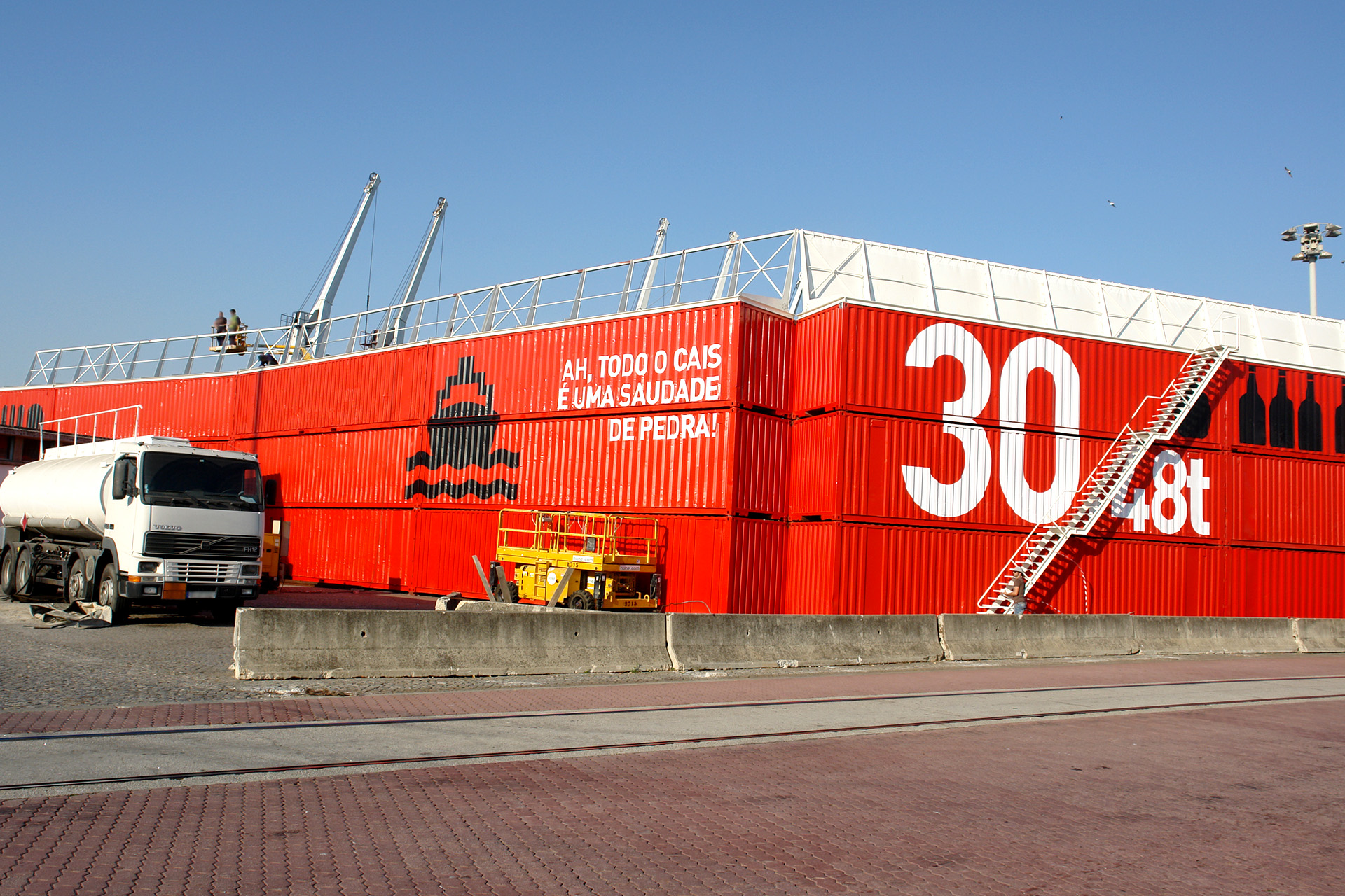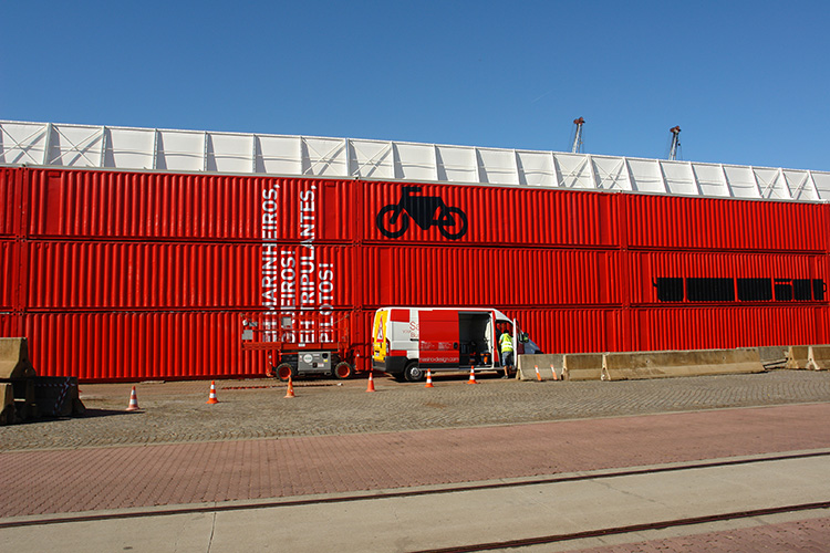 Animação de barreira de contentores do Cais da Estiva em vinil autocolante banner.