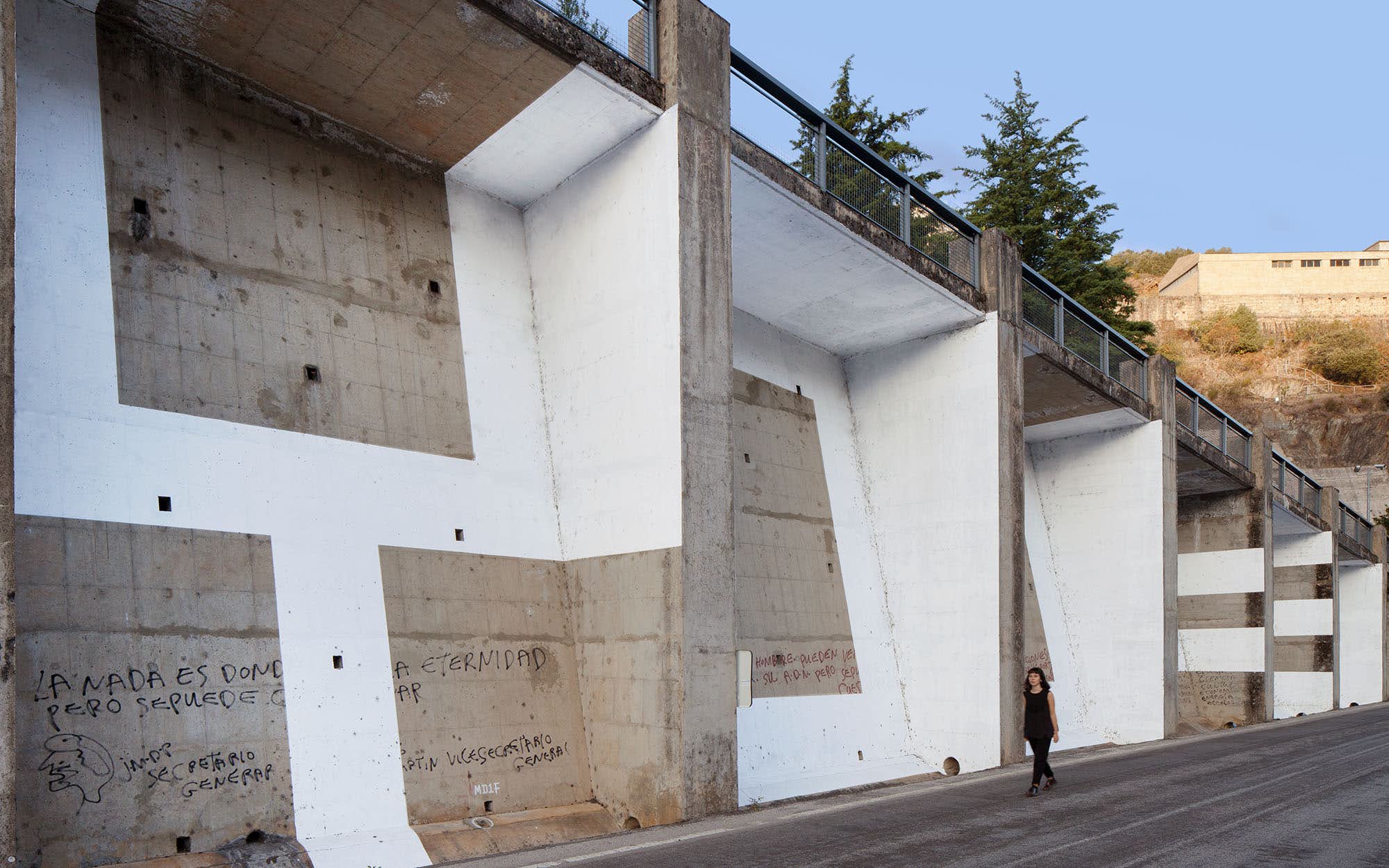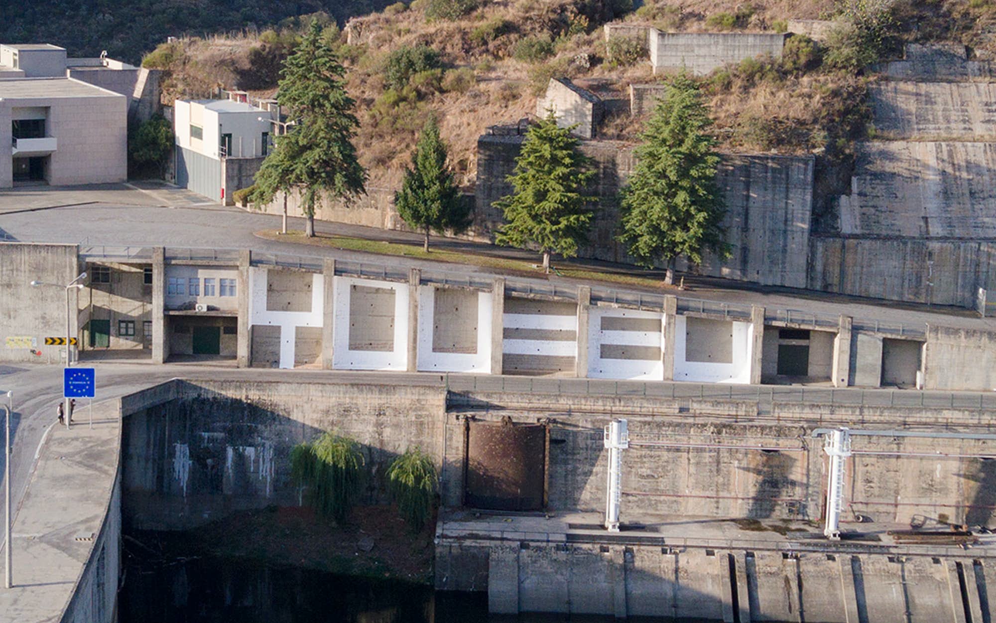Pintura artística por stêncil na barragem de Miranda do Douro