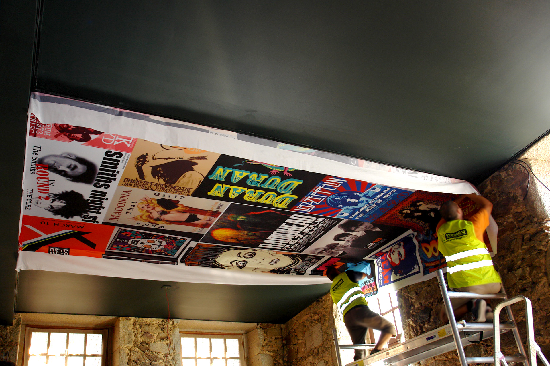 • - Tecto forrado em tecido de cenário, impresso por sublimação directa
